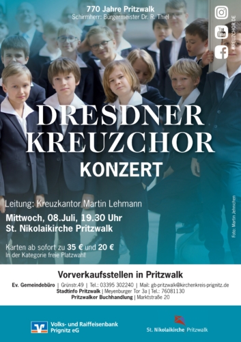 Ein außergewöhnliches Ereignis steht anlässlich der 770-Jahrfeier für Pritzwalk und für die ganze Region ins Haus: Ein Konzert des weltberühmten Dresdner Kreuzchores!